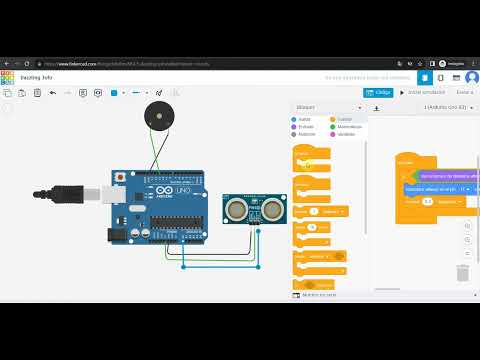 Programacion robotica en tinkercad arduino uno Sensor de distancia + piezo buzzer (estacionamiento)